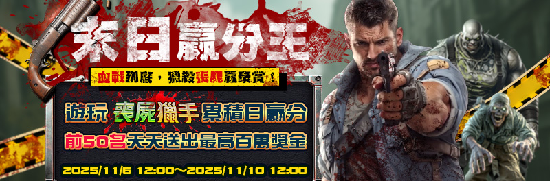 - 在星河以上廳館遊玩《喪屍獵手》時,每一轉贏的分數都會列入排行榜中。