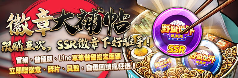 | 100,000元 | 10,000,000 | 無限廳SSR徽章x1 / 1:1館SSR徽章X1 |