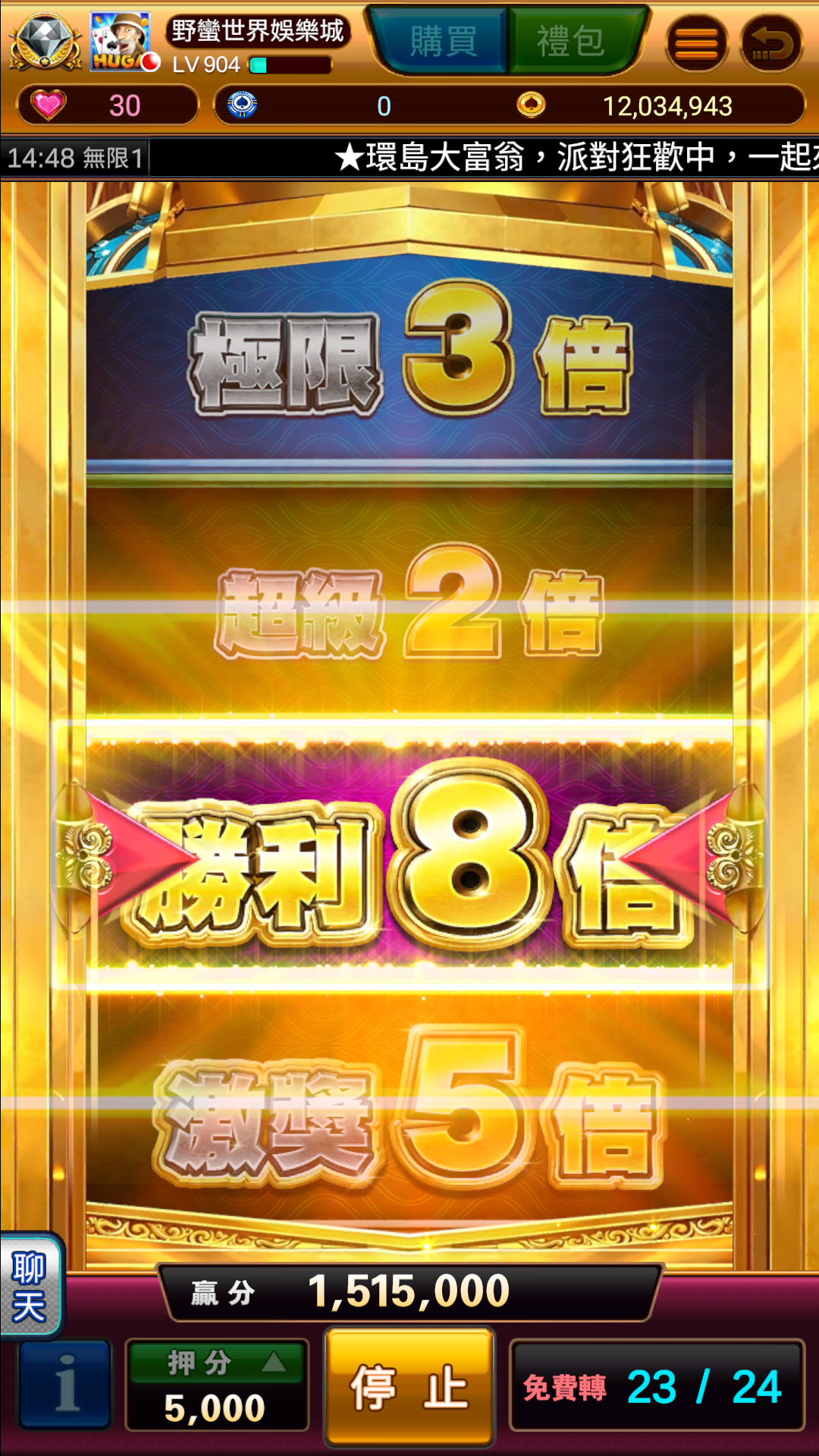盤面拉升到第四盤,乘數轉輪最高拿x8!